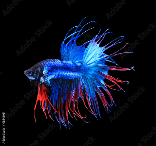 Red And Blue Siamese Betta Fighting Fish Full Tail And Fin Isola Stock Image K23401543 Fotosearch